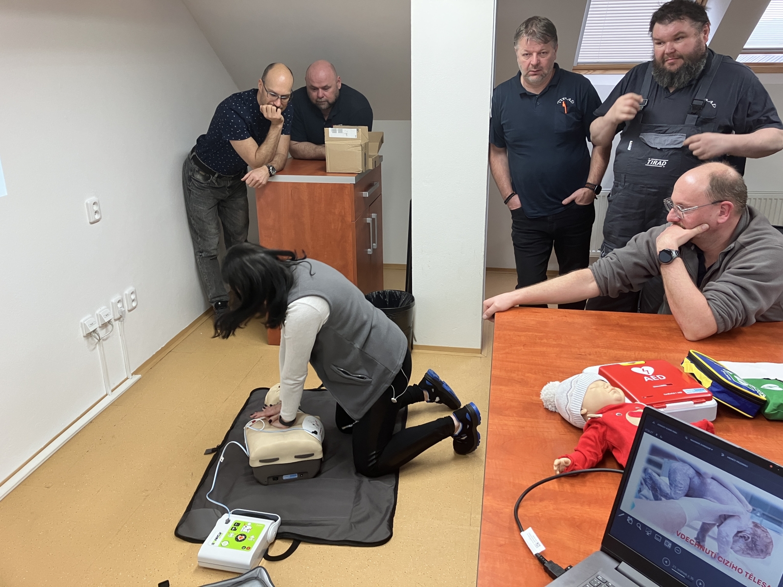 Letos dále posilujeme naše bezpečnostní opatření přidáním automatizovaného defibrilátoru (AED). Vybraní zaměstnanci absolvovali specializované školení v používání zařízení a resuscitaci (CPR), což jim umožňuje poskytovat okamžitou pomoc při vážných lékařských nouzových situacích – ještě před příchodem odborné pomoci. Tento proaktivní přístup může zásadně ovlivnit záchranu životů.